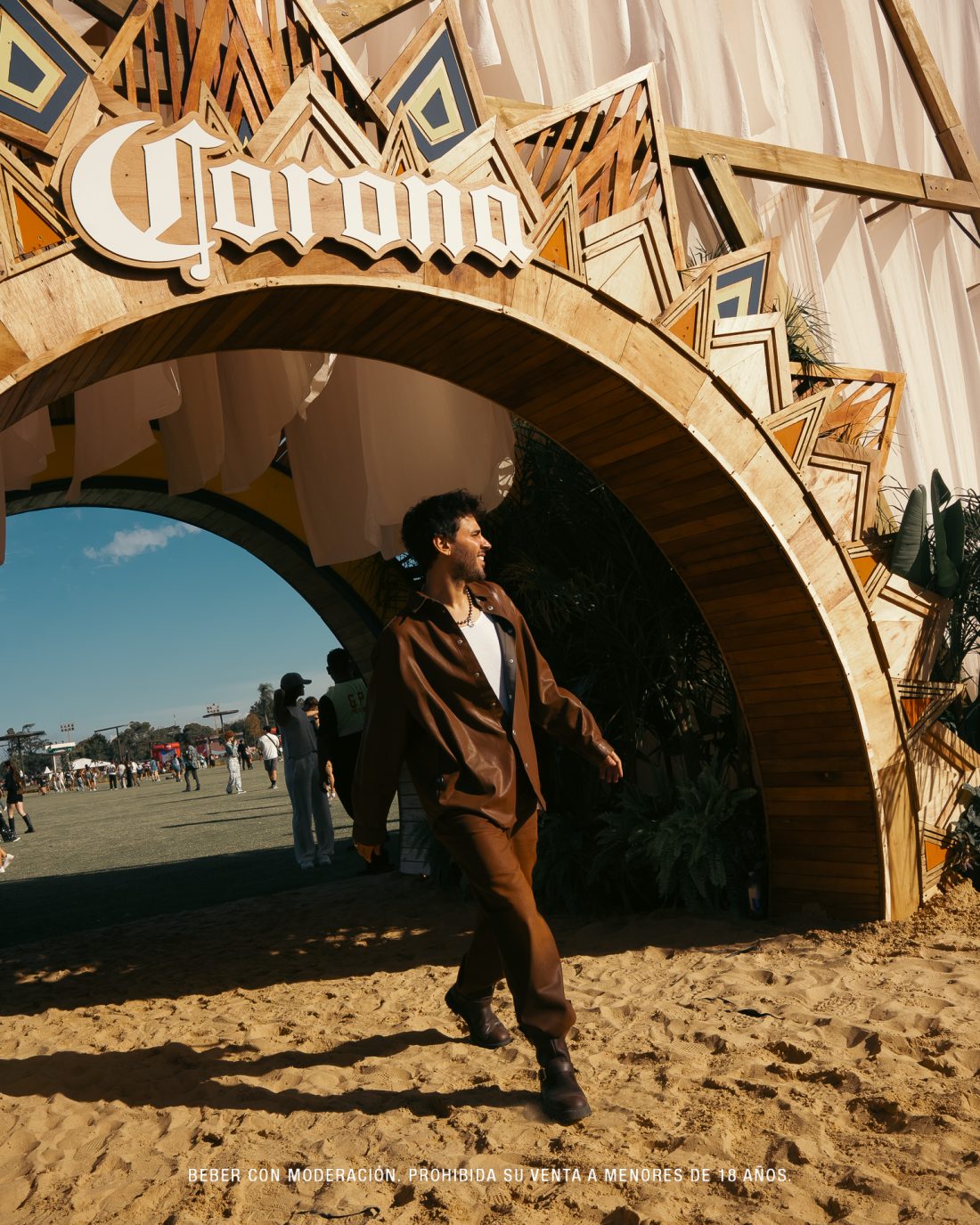 Bajo el concepto de sunset, Corona vuelve a activar uno de los momentos más icónicos del festival. Ese instante en el que el sol cae, la luz cambia y todo se detiene por un segundo: brindis, outfits, fotos. Una postal que, año a año, define el cierre de cada jornada.