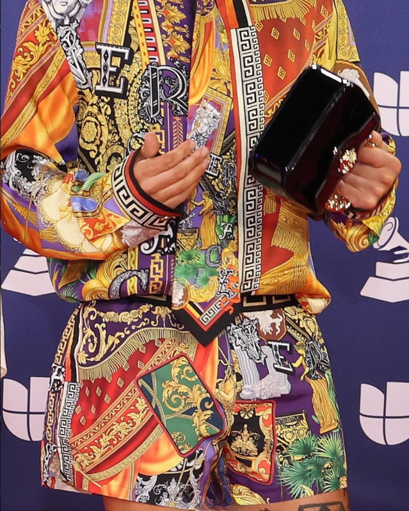 El dúo acaba de ganar 5 Latin GRAMMYS. Y para este momento, nada los eleva más que un VERSACE opulento, estampas barrocas y un glamour de lujo e irreverencia.
