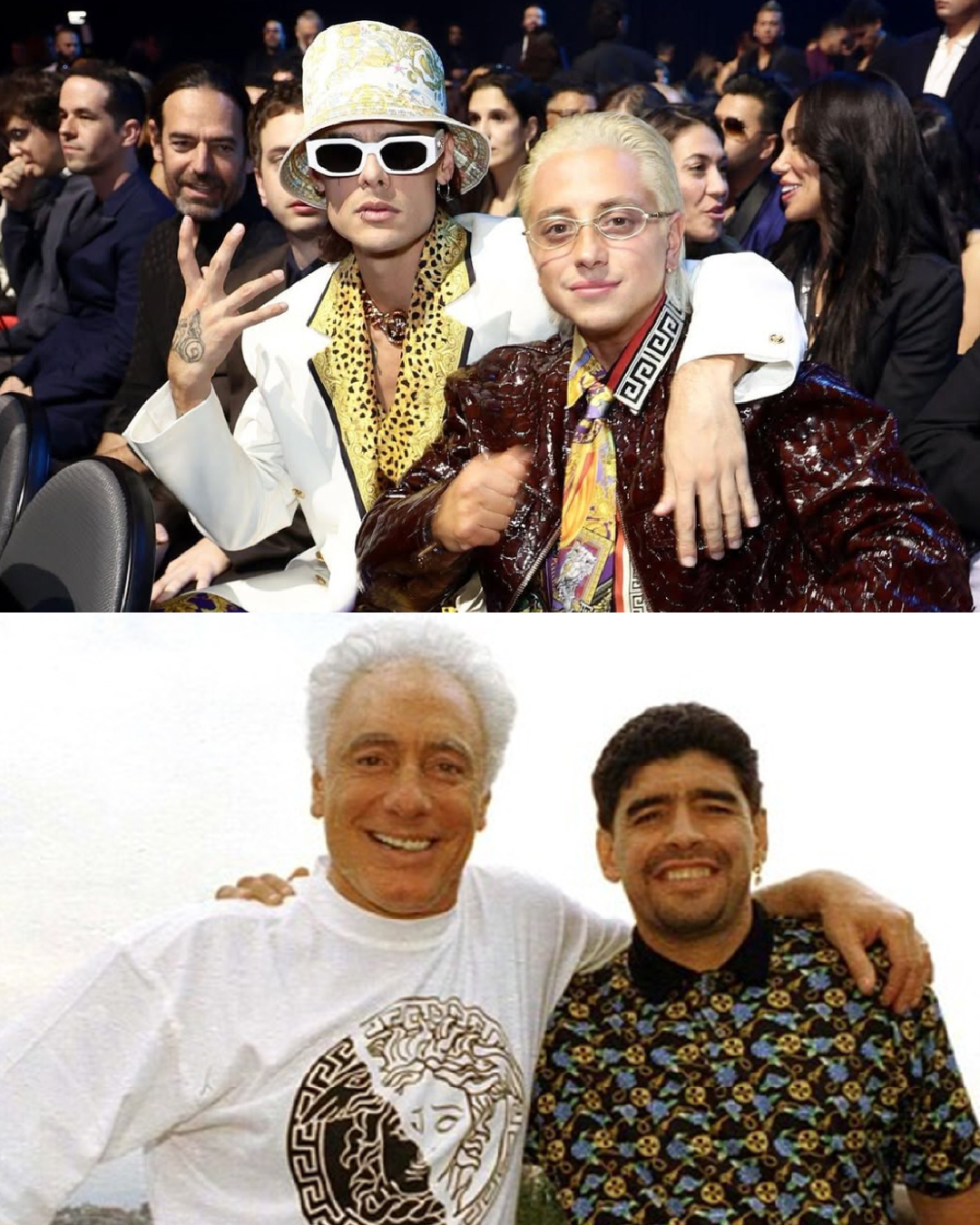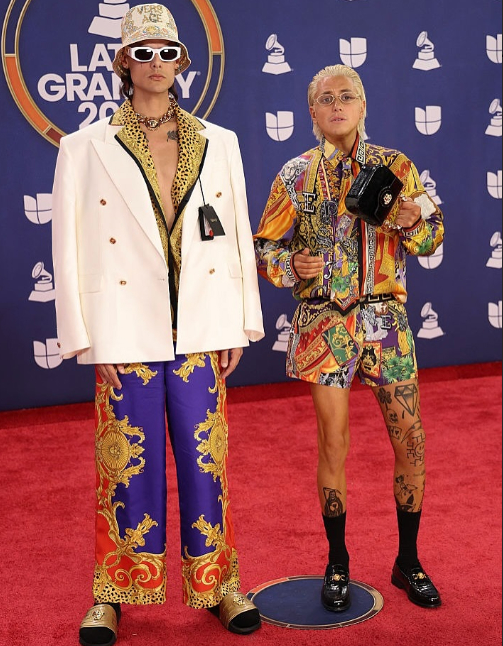 El dúo acaba de ganar 5 Latin GRAMMYS. Y para este momento, nada los eleva más que un VERSACE opulento, estampas barrocas y un glamour de lujo e irreverencia.