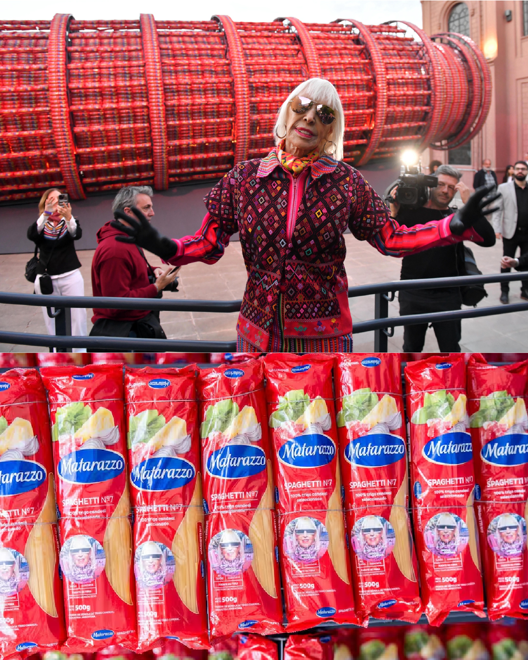 En la nueva edición de La Noche de los Museos, Marta Minujín: convertió lo ordinario en un gesto monumental. Esta vez, levantó en el Centro Cultural Recoleta una Torre de Pisa hecha de acero y recubierta por más de 15.000 paquetes de fideos Matarazzo. Una obra que descoloca, divierte y, como siempre con Marta, invita a participar.