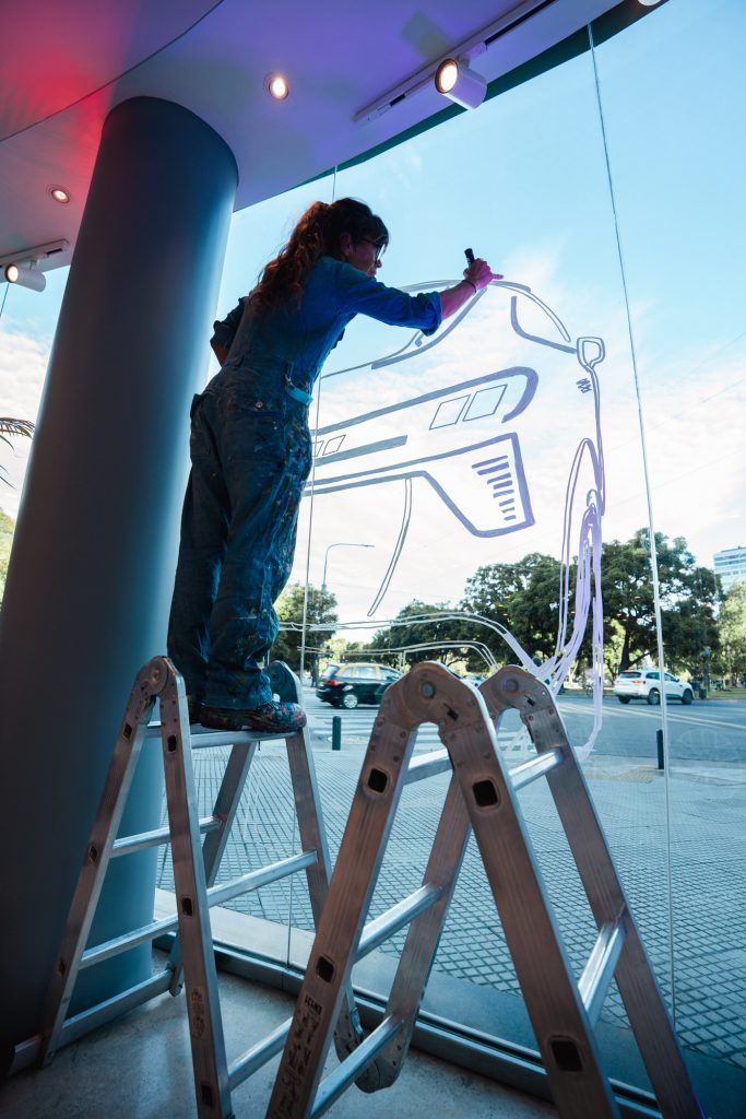 Durante el evento en Audi Lounge, pudimos vivir una experiencia inmersiva. La fachada del edificio fue intervenida en vivo por una artista argentina de street art, quien creó una obra inspirada en las líneas, los colores y el carácter del Nuevo Q3, mientras que una DJ referente de la escena local acompañó la noche con un set especialmente curado para la ocasión.